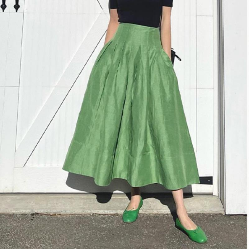 Французская Элегантная Ретро Зеленая Юбка-Зонтик Темпераментная С Высокой Талией Стройнящая Пышная Юбка Женская Юбка L зелёный