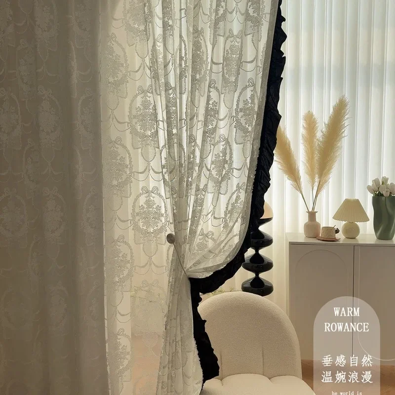 Французские Кружевные Черные Короткие шторы в стиле ретро для гостиной, столовой, спальни, роскошные женские стильные оконные шторы на заказ