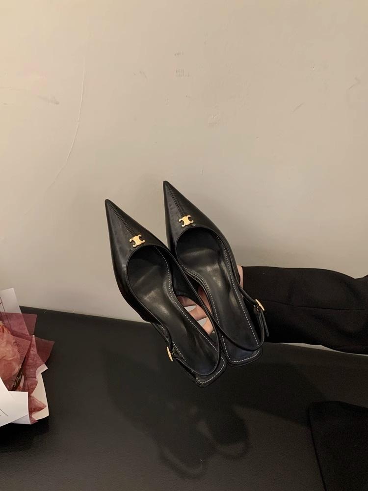 Французские черные туфли-стилеты с темпераментом, сандалии с закрытым носком, туфли феи, новая весенне-летняя коллекция 2025 года, остроносые туфли-лодочки 42 чёрный