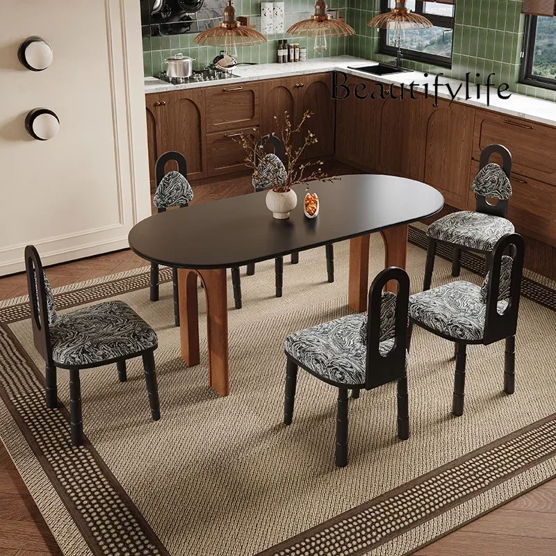 Французский Ретро-обеденный стол для маленькой квартиры, домашний обеденный стол из массива дерева Овальной Черной плиты