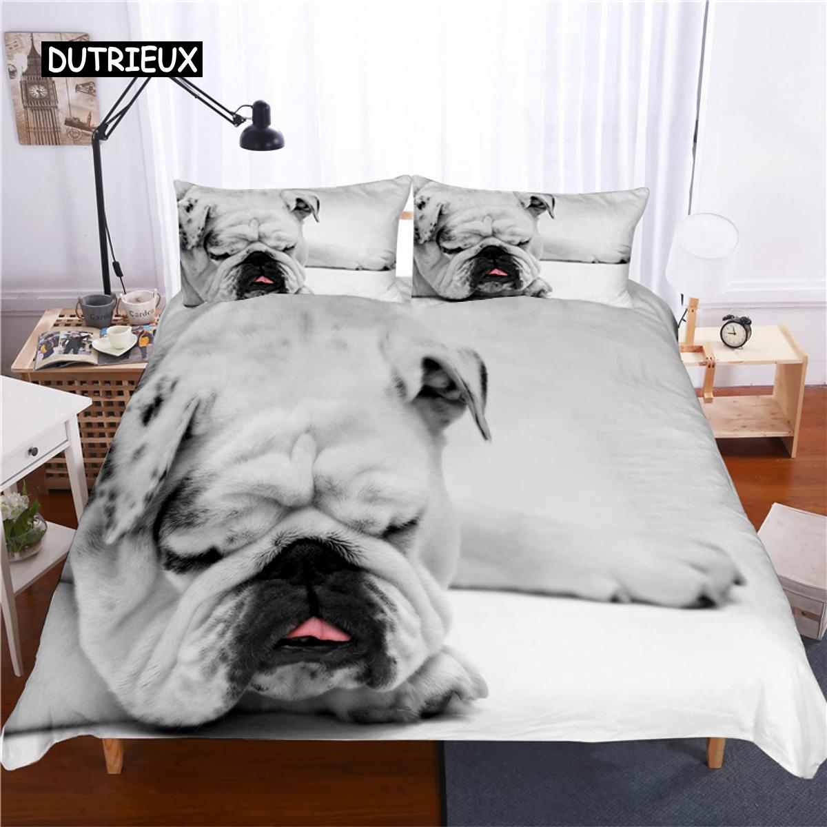 Французский бульдог с принтом для детей, комплекты постельного белья из полиэстера, пододеяльник, наволочка размера Queen King Size, милый питомец, щенок, одеяло, покрывало EU single(135x200cm)