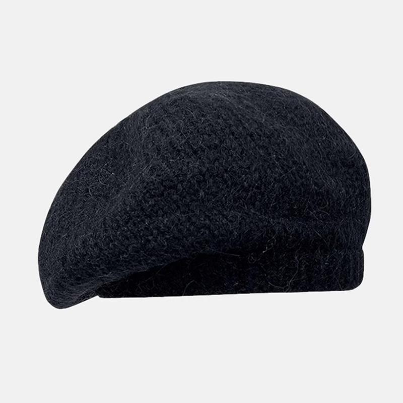 Французский свободный женский мохеровый шерстяной трикотажный берет шапка шапка бини зима чёрный