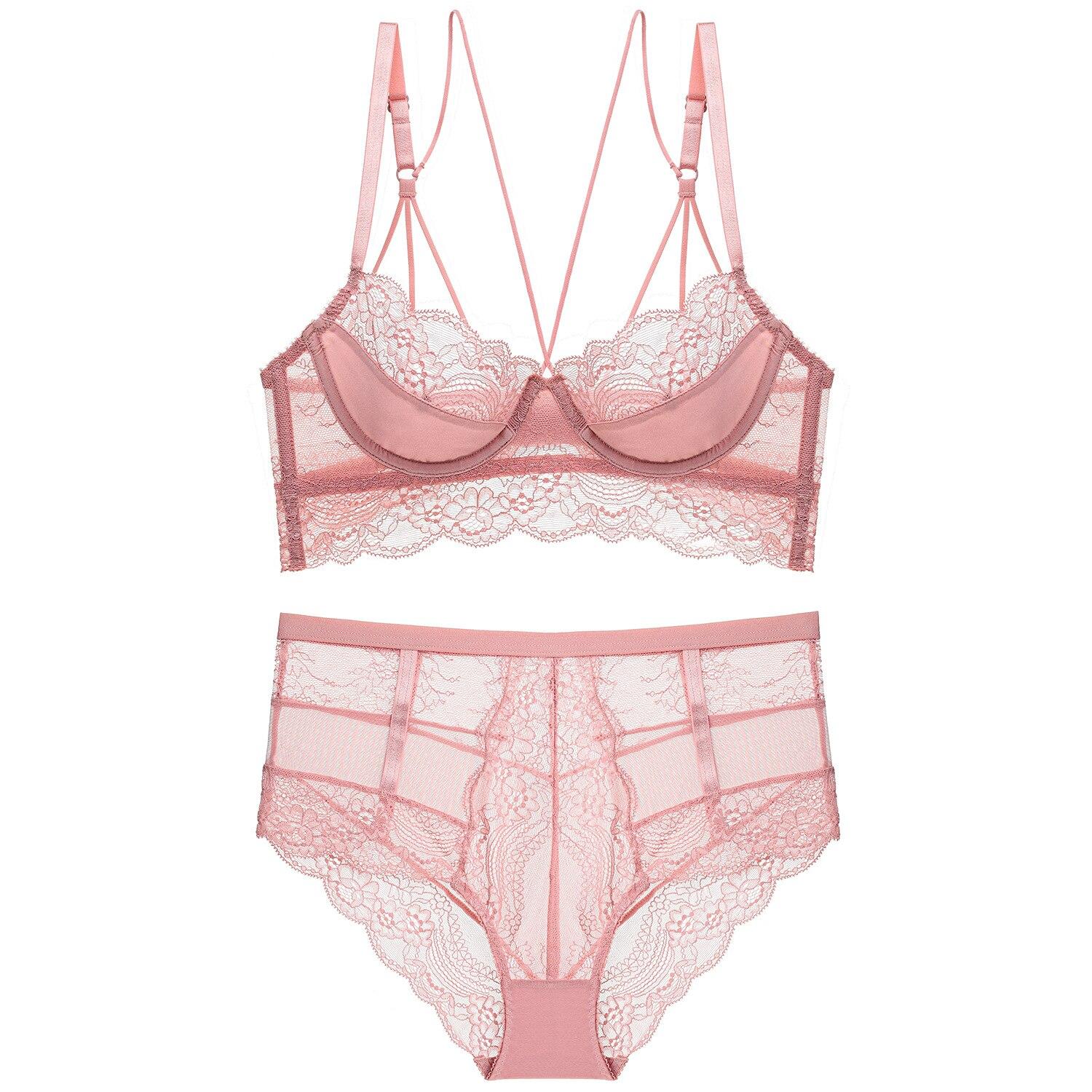 Французский ультратонкий сексуальный кружевной комплект с бюстгальтером, женское полое черное нижнее белье, плюс размер, чашка CD, бюстгальтер без косточек, комплект трусиков с высокой талией 80D розовый