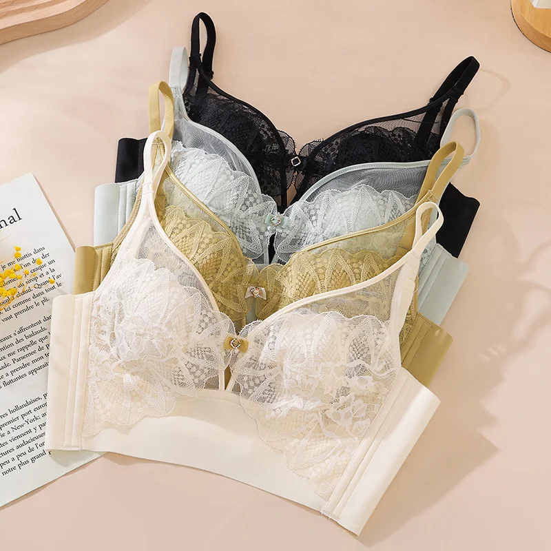 Французское нижнее белье для женщин, тонкий бесшовный бюстгальтер пуш-ап, кружевной бюстгальтер на косточках