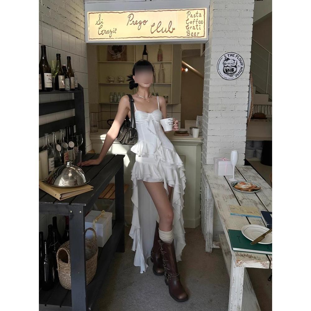 Французское супер фея чистое желание платье на бретелях с оборками и вставками темпераментное женское нишевое стройнящее тонкое нерегулярное платье M- (recommended 90-50 kg) белый