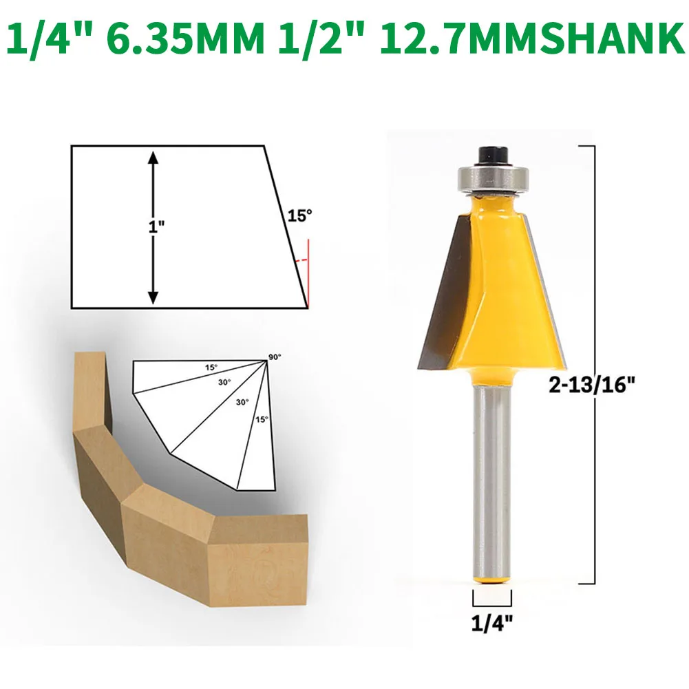 Фреза для резьбы по дереву, хвостовик 1/4 дюйма, 6,35 мм, 1/2 мм, хвостовик 12,7 мм, 15 градусов фаски и скошенные фрезы, фреза для деревообработки, 1 шт.