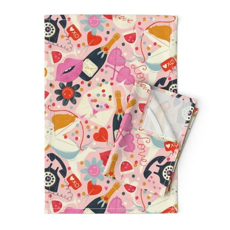 Printed Tea Towel Linen Cotton Canvas - Love Valentine Kitsch Romance Champagne Lovecore Print Decorative Kitchen Towel by Spoonflower