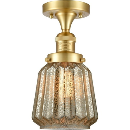 Satin Gold Tone Semi Flush 6 Wide Steel/Cast Brass/Glass Medium Base LED 1 Light Fixture
