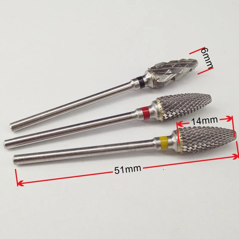 Фрезы для ногтей, твердосплавные фрезы для дизайна ногтей, твердосплавные фрезы для грубого маникюра, 3 шт., 51 мм