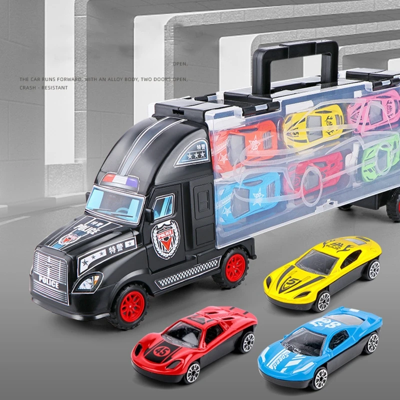 Фрикционная игрушечная машинка из литья под давлением, с 2 переносками и портативной ручкой, Забавная детская игрушка для путешествий и веч...