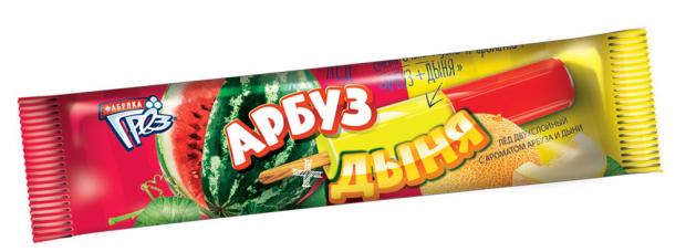Лед двухслойный, фруктовый, с ароматом арбуза и дыни.