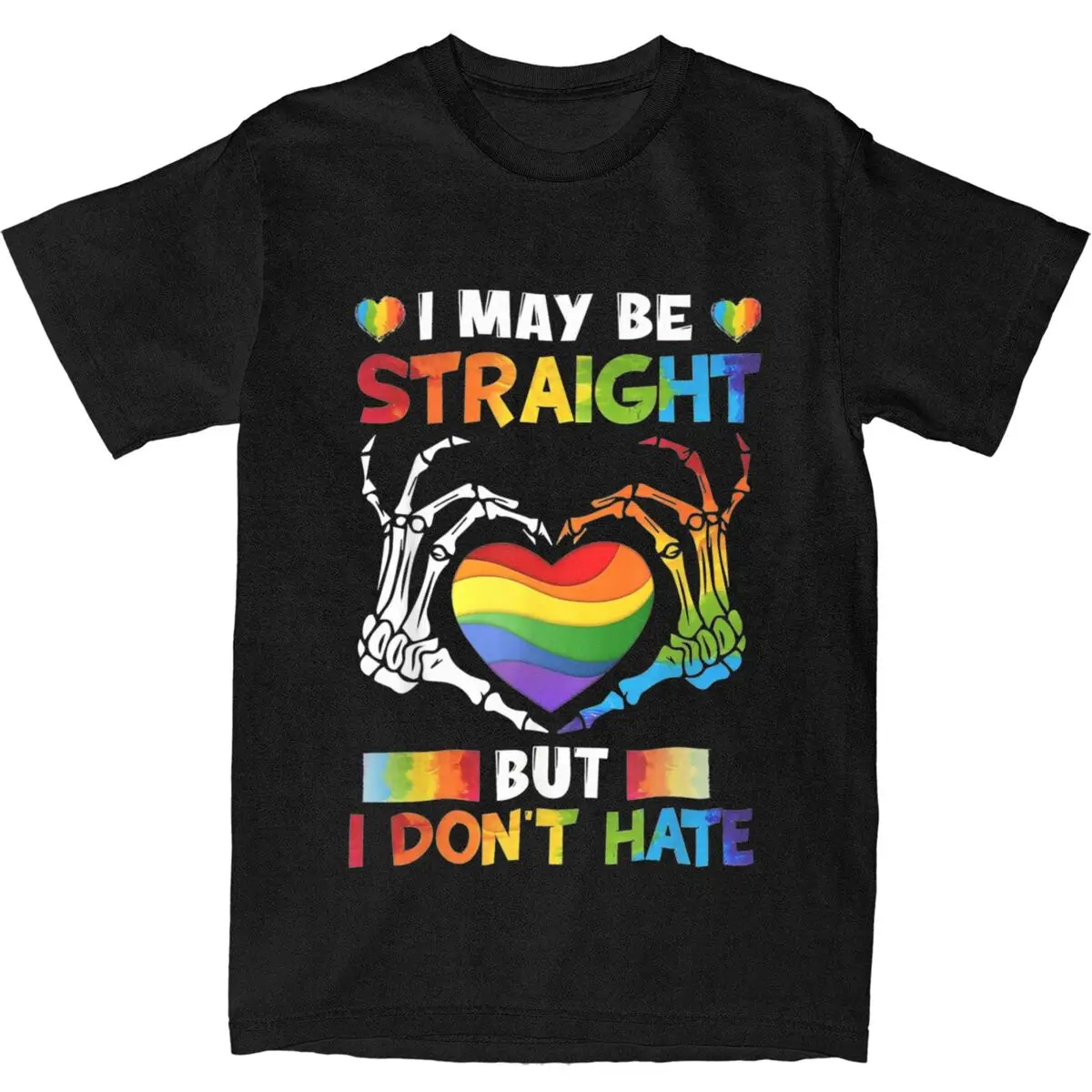 Футболка ЛГБТ я могу быть прямым, но я не люблю ЛГБТ, летняя уличная одежда с радужным сердцем, футболки в стиле Харадзюку, мужская повседневная одежда