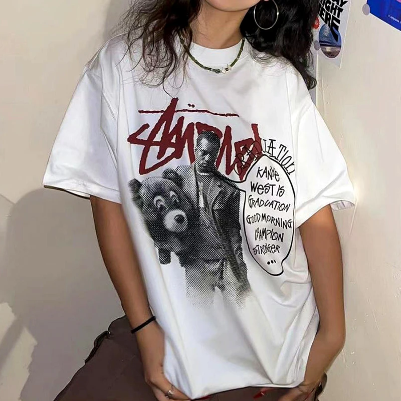 Футболка Мужская/Женская хлопковая оверсайз, модная уличная одежда в стиле хип-хоп с коротким рукавом и надписью и граффити, повседневная Летняя одежда с круглым вырезом