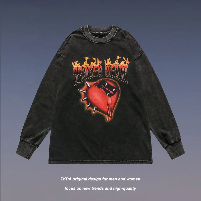 Футболка Мужская/женская оверсайз с длинными рукавами и принтом пламени любви