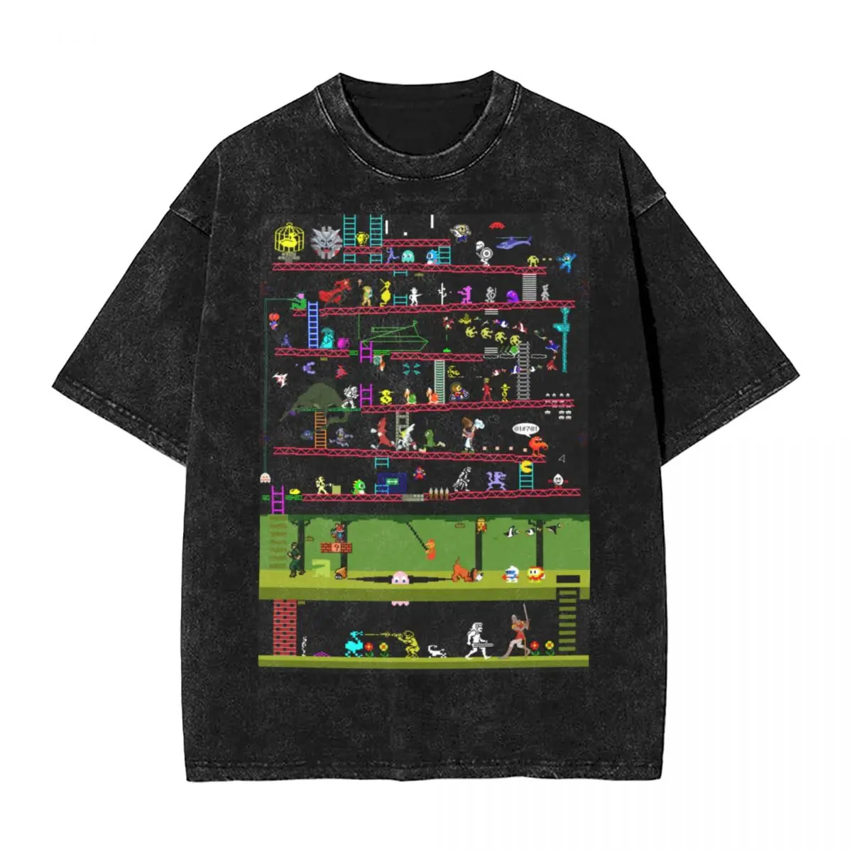 Футболка Мужская/женская с принтом, винтажная промытая аркадная коллаж в стиле хип-хоп, Топ в стиле Харадзюку, с графическим принтом, 50 игр