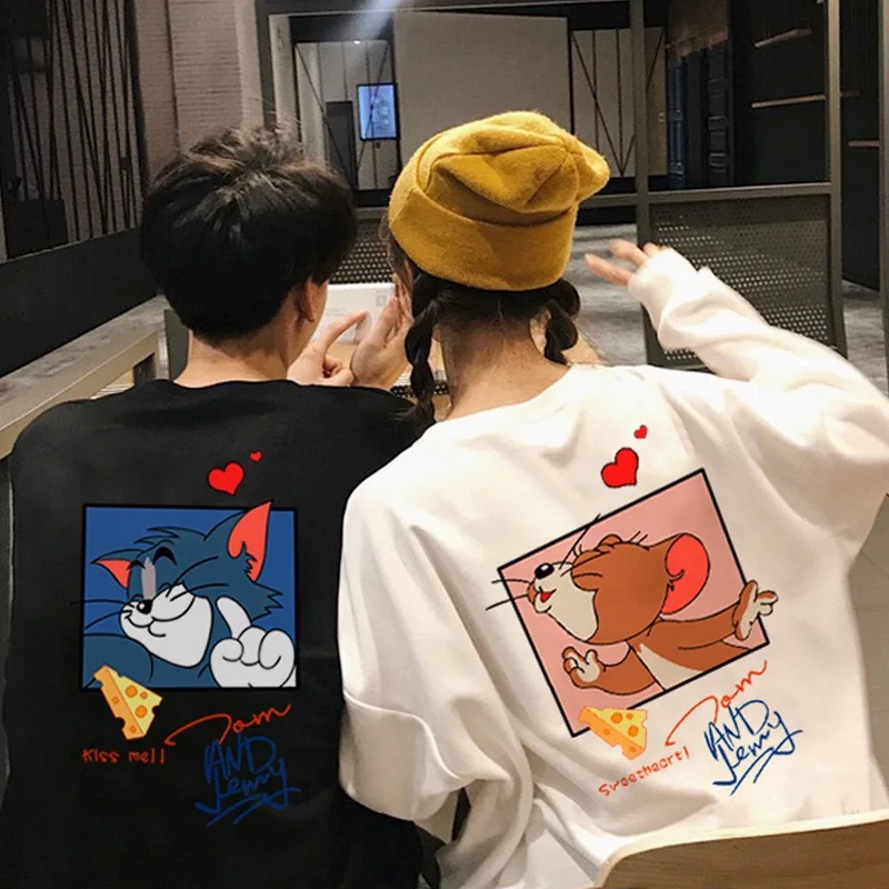 Футболка Мужская/женская с принтом кота Тома Джерри и мыши, 100% хлопок