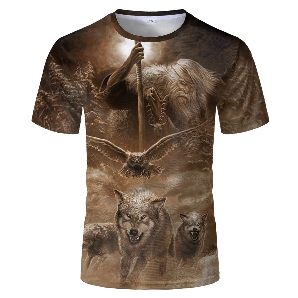 Футболка Мужская/женская с 3D-принтом волка, модная тенниска с коротким рукавом, крутая майка в стиле Харадзюку, лето 2021