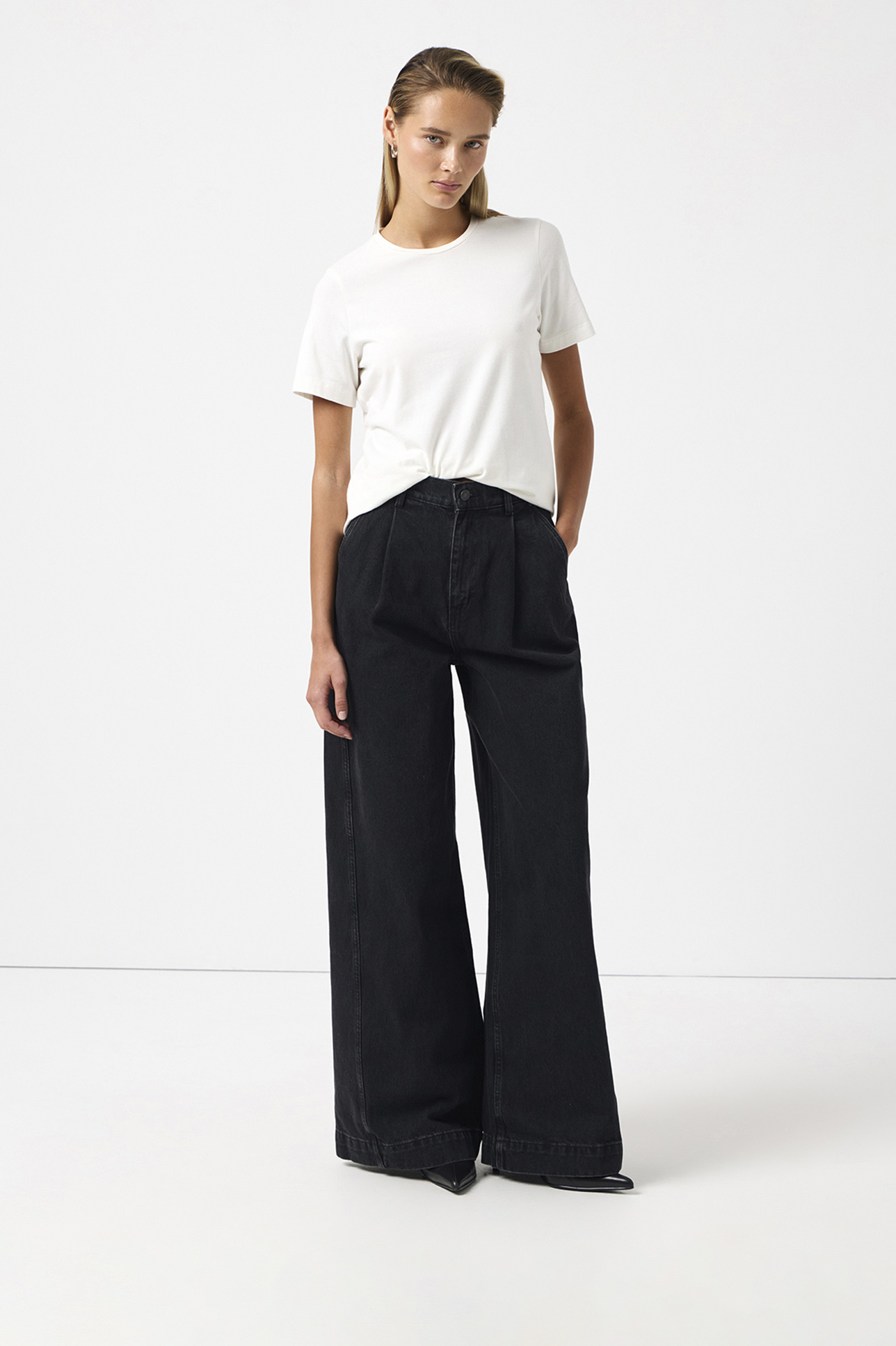 Футболка базовая с эффектом велюра молочного цвета, S