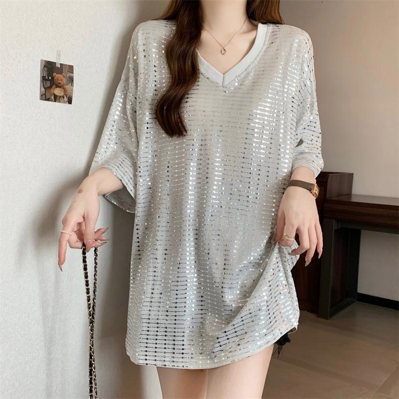 Футболка большого размера Свободная удобная ing рубашка Свободная универсальная повседневная футболка с V-образным вырезом и короткими рукавами Топы женские XXXL белый