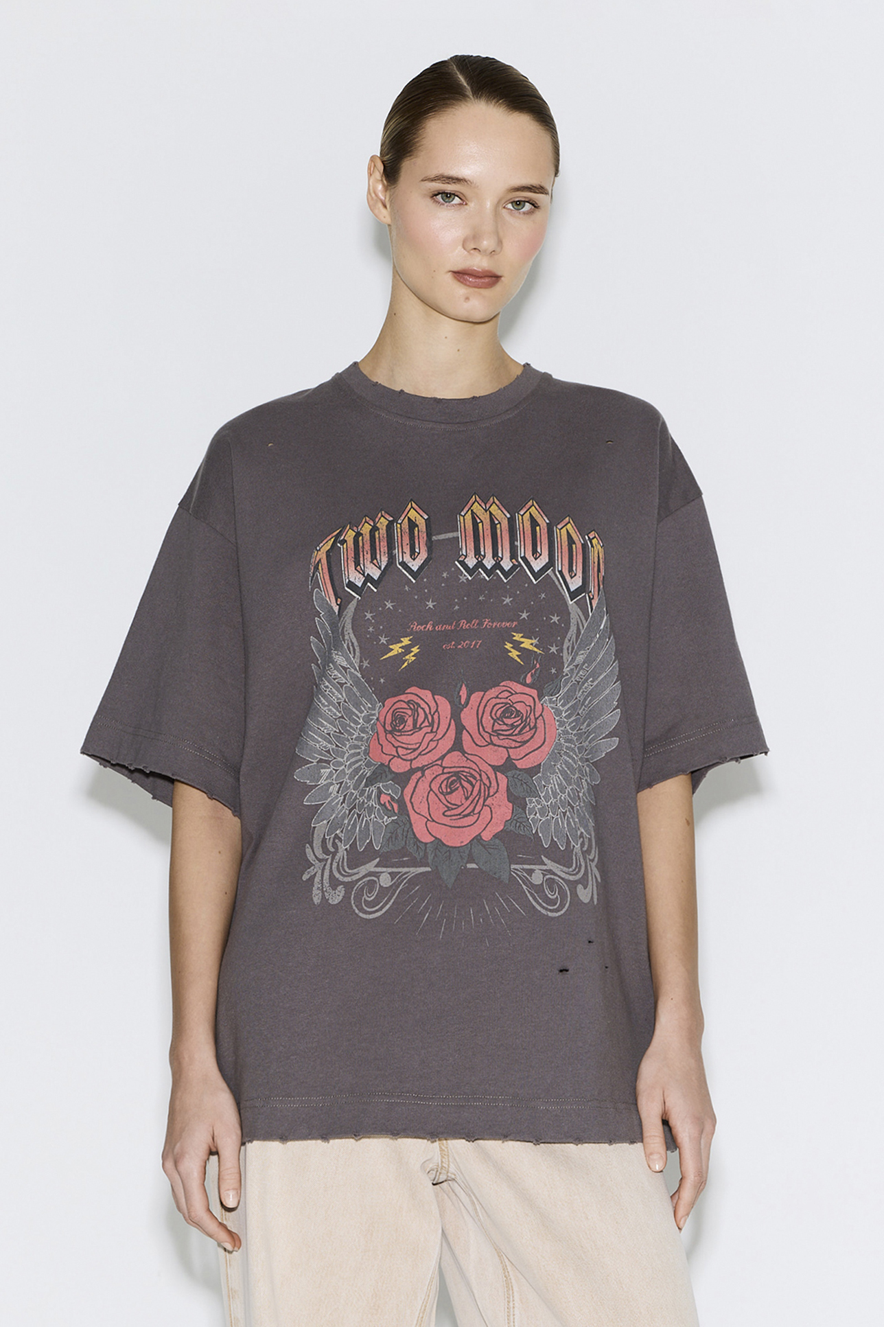 Футболка в любимом фите наших клиентов Vintage Vibe, с потертостями, рваным эффектом и принтом. Модель из 100% хлопка с эффектом варки и запоминающимся принтом “Розы” в ретро-стиле. Изделие выполнено из плотной кулирной глади высокого качества. Футболка отлично сочетается с денимом из нашей новой коллекции.