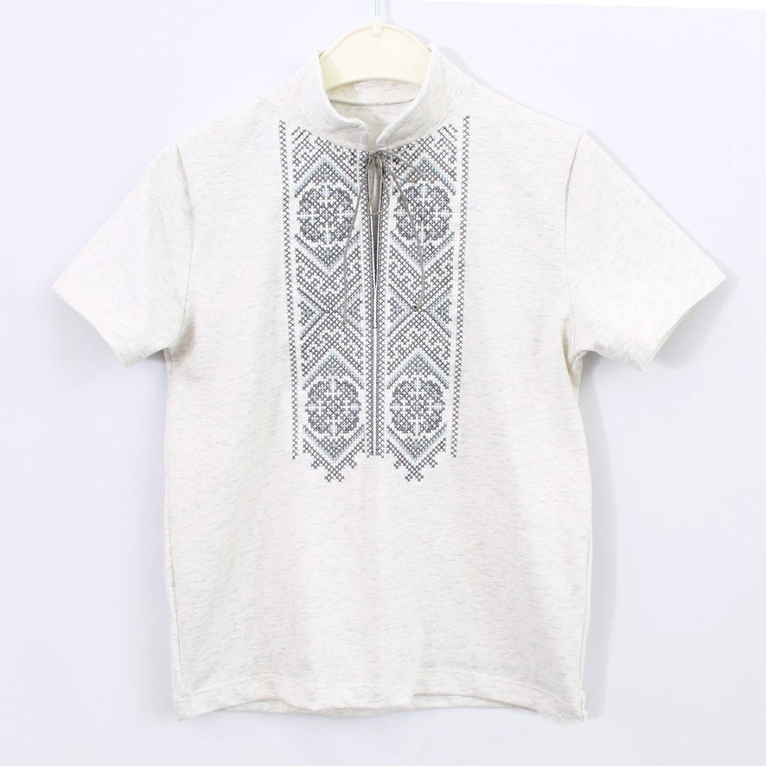 Трикотажная футболка вышиванка для мальчика на короткий рукав с серой вышивкой от Украинского производителя ТМ Ладан.
