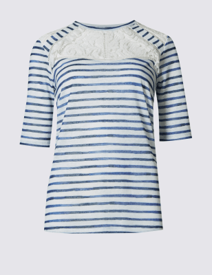 Футболка в полоску с кружевной вставкой, Слоновая кость микс