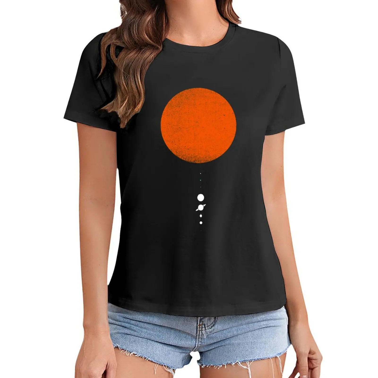 Футболка в стиле минималистичной солнечной системы, корейская модная футболка в стиле оверсайз с черной графикой для женщин