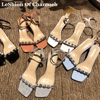 2019 New Patent Leather Diamond Sandals Woman Size 42 Open Toe Ankle Strap Summer Sandals Black Pink Blue Silver Crystal Shoes
