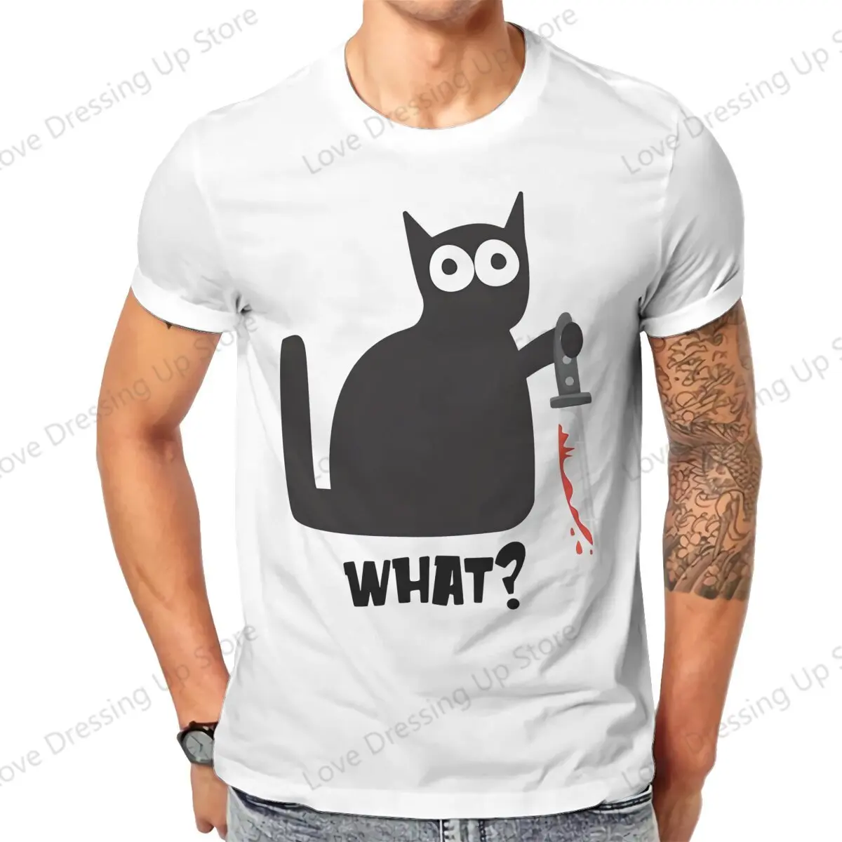 Футболка для Хэллоуина с черной кошкой, с ножом, Мужская одежда, хлопковая футболка для мужчин