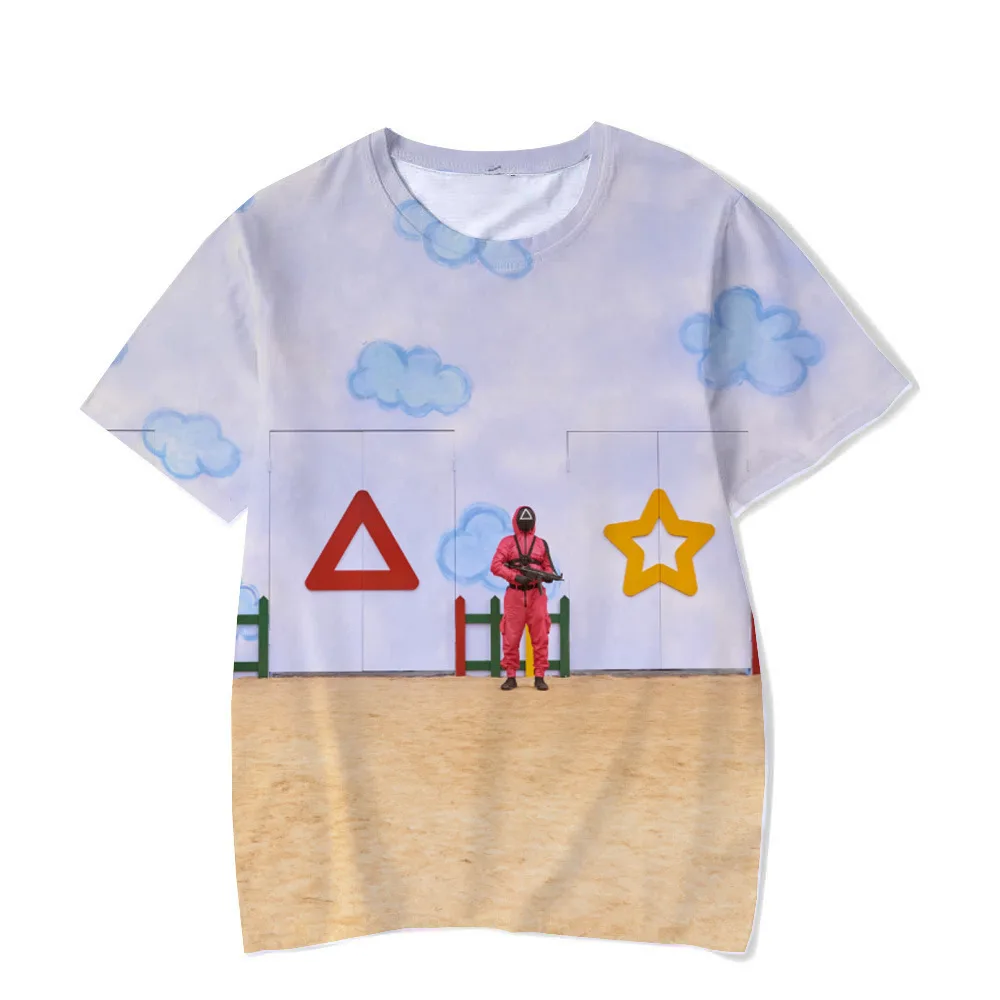Футболка для мальчиков и девочек, с 3D-принтом «Игра кальмар»