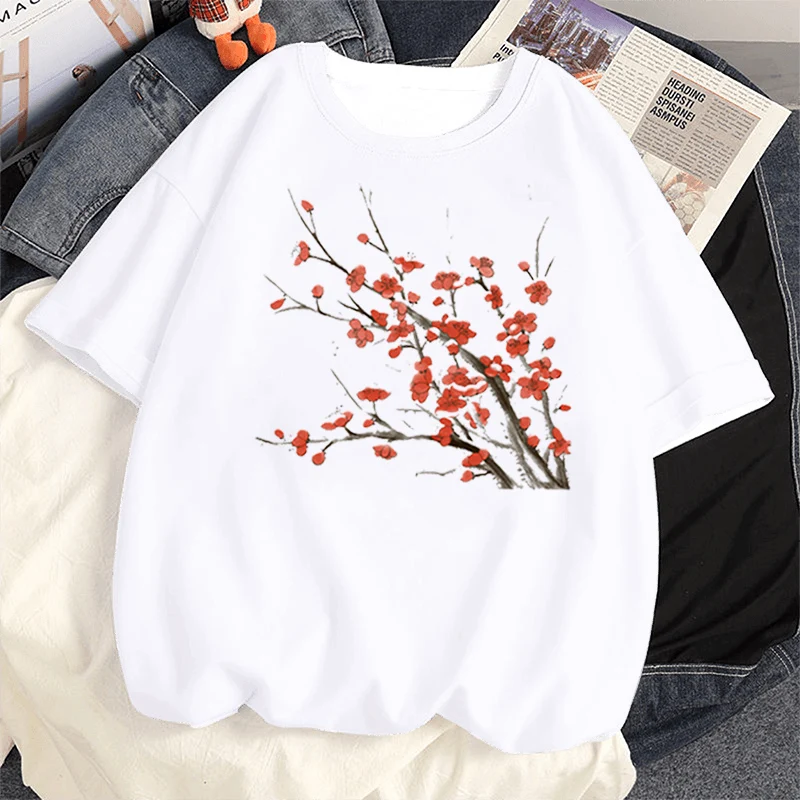 Футболка женская, белая, с цветочным принтом, с коротким рукавом