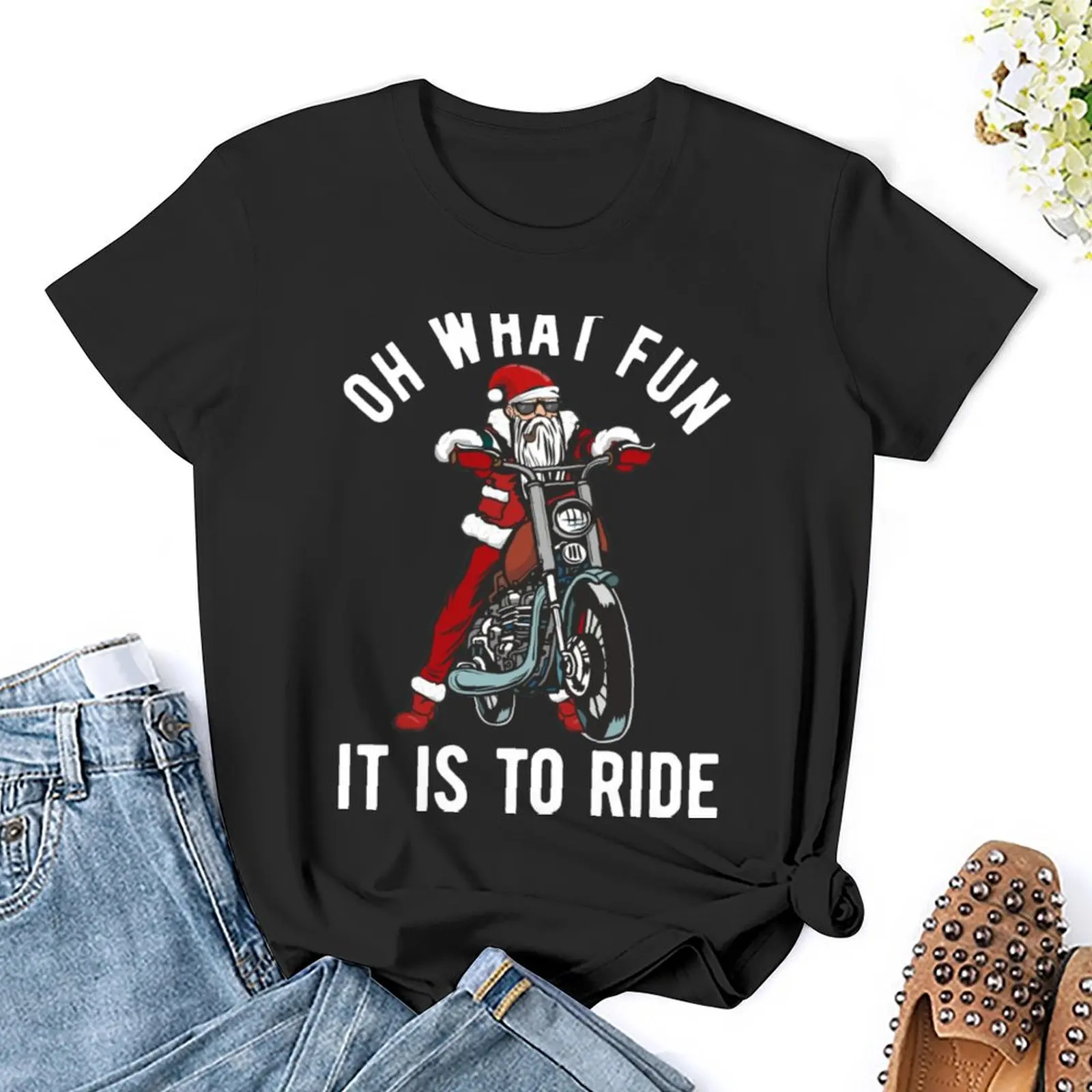 Футболка женская в байкерском стиле с Санта-Клаусом для езды на мотоцикле
