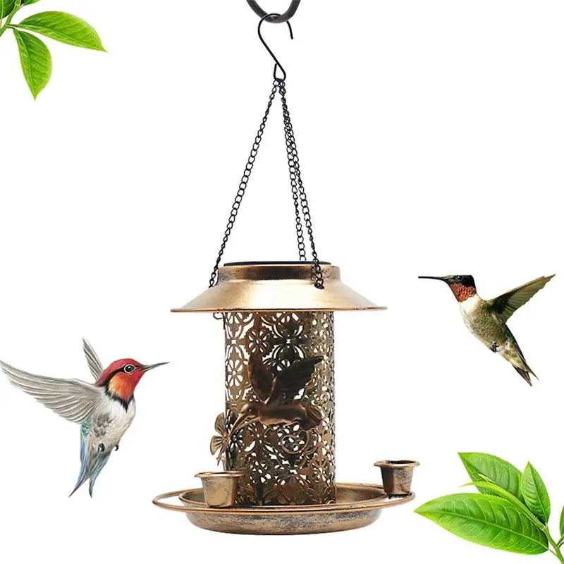 Кормушка для птиц на солнечной батарее, декоративная подвесная медная кормушка для кормления диких птиц