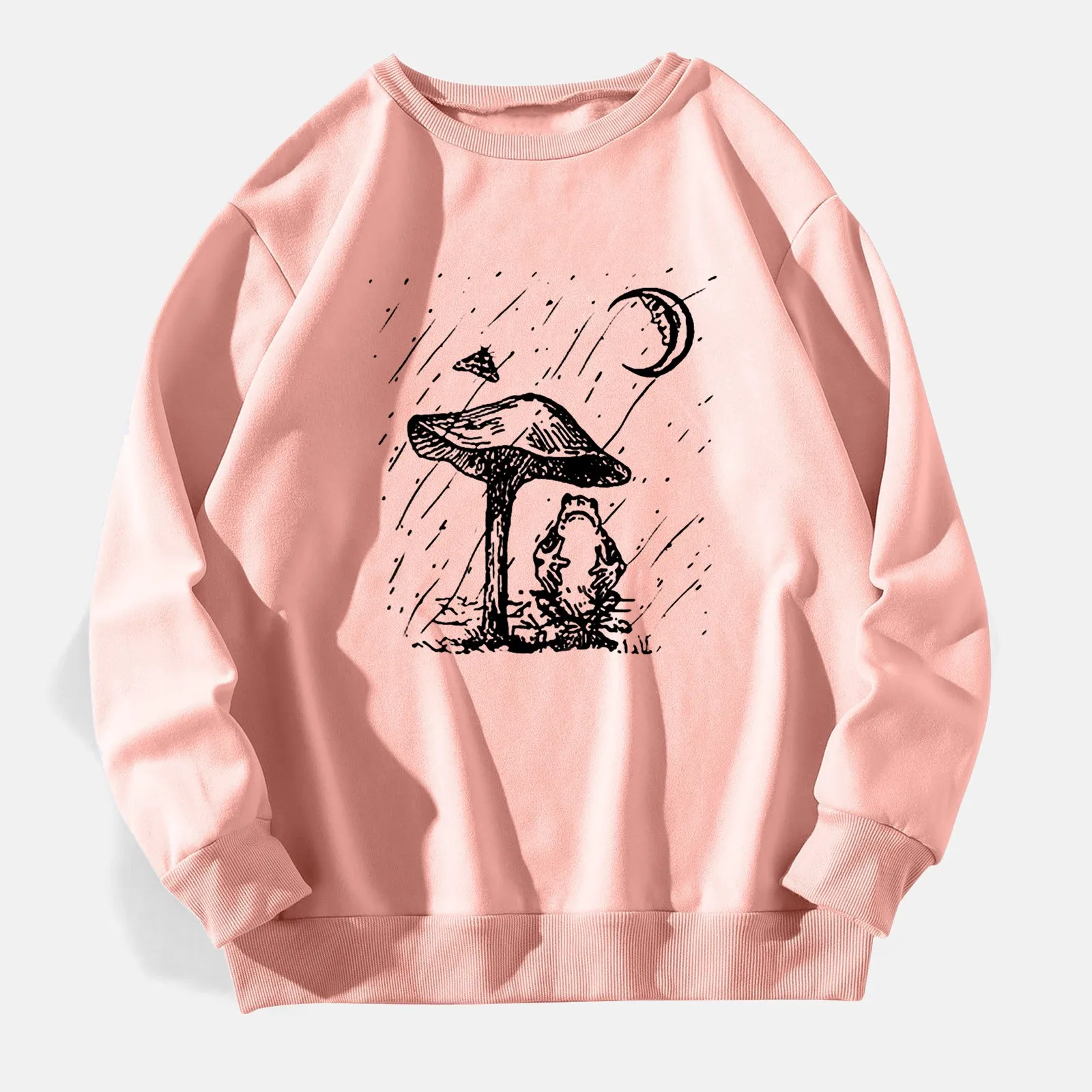 Футболка женская длинная с круглым вырезом, Повседневная Уличная одежда с принтом солнца, Луны, грибов, в стиле Харадзюку, осень