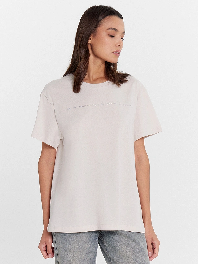 Футболка женская кремовая с надписью, Лед +печать, 24-4129Ц-0