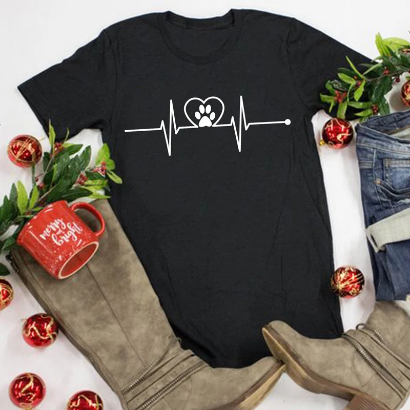 Футболка женская летняя из 100% хлопка с изображением милой лапы сердцебиения
