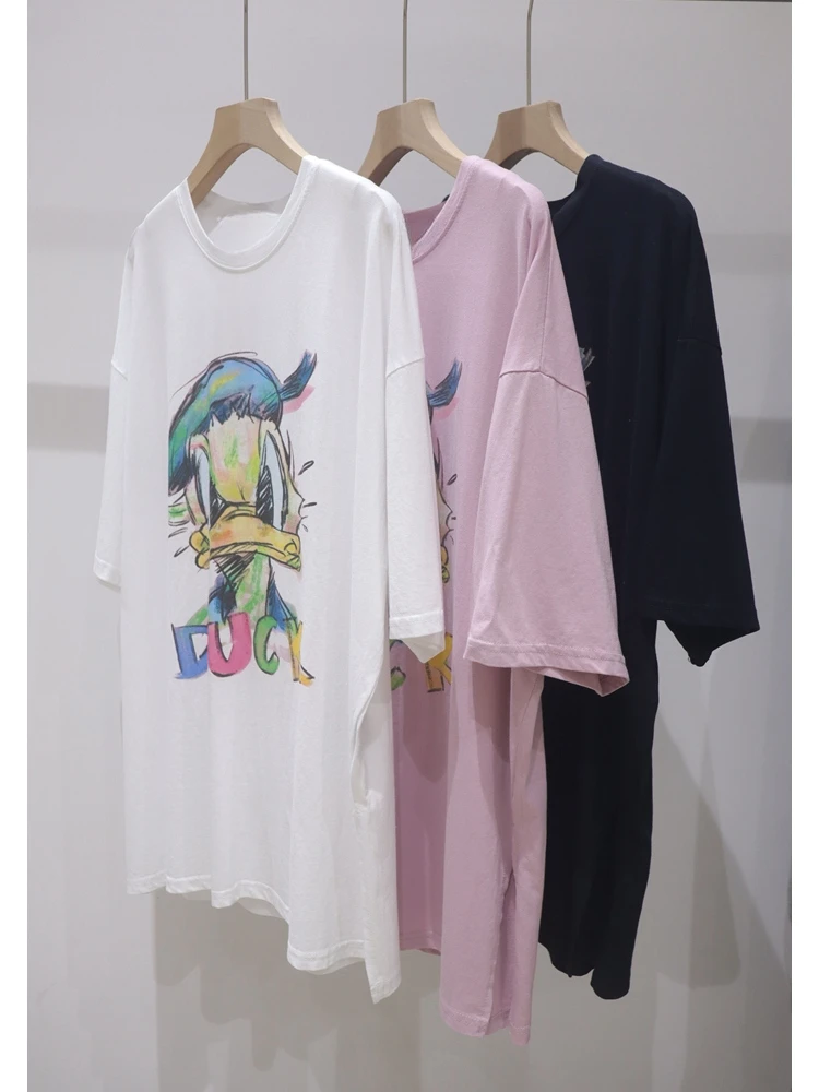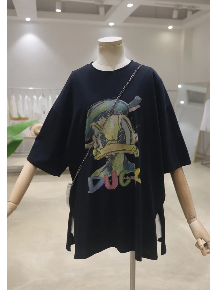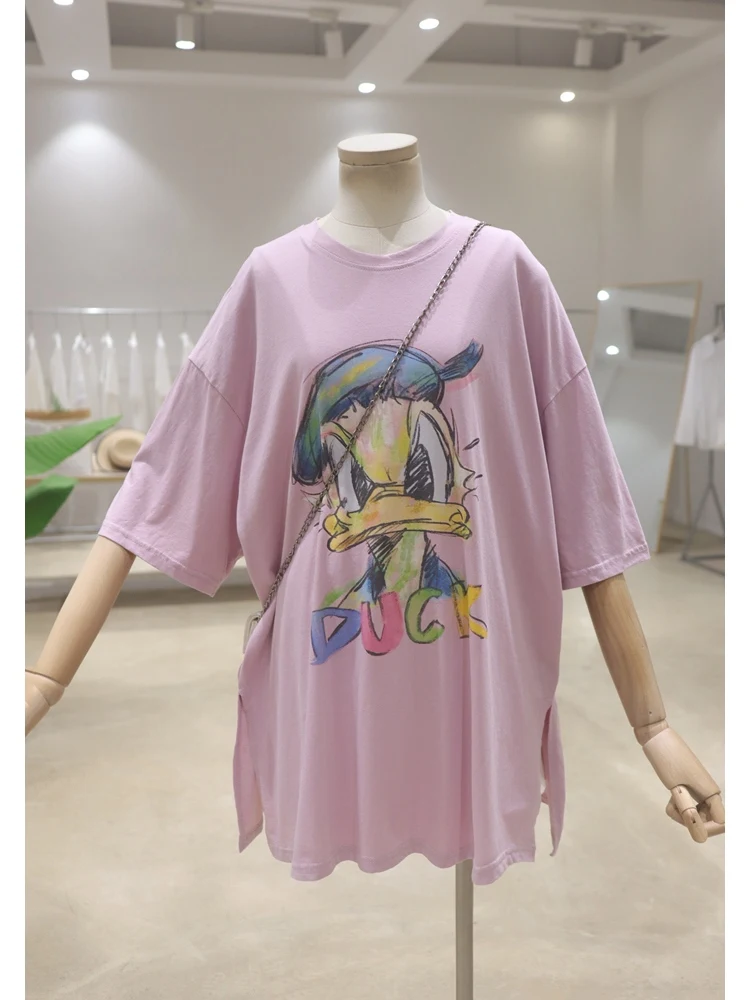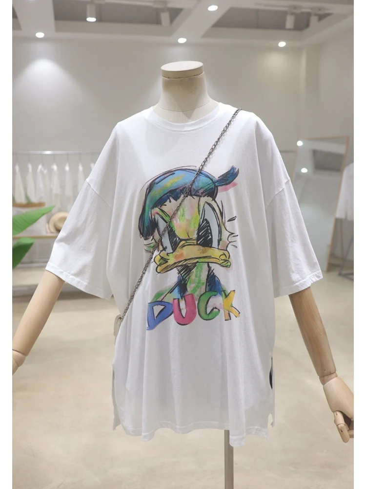 Футболка женская летняя свободная из дышащего хлопка, с коротким рукавом