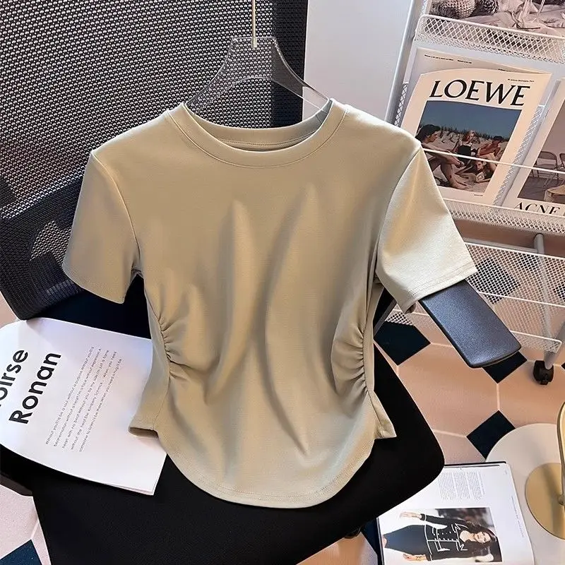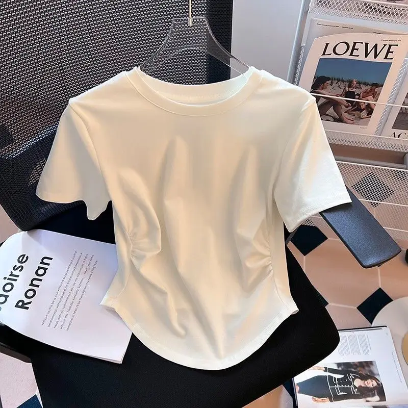 Футболка женская необычная плиссированная с коротким рукавом, в американском стиле ретро