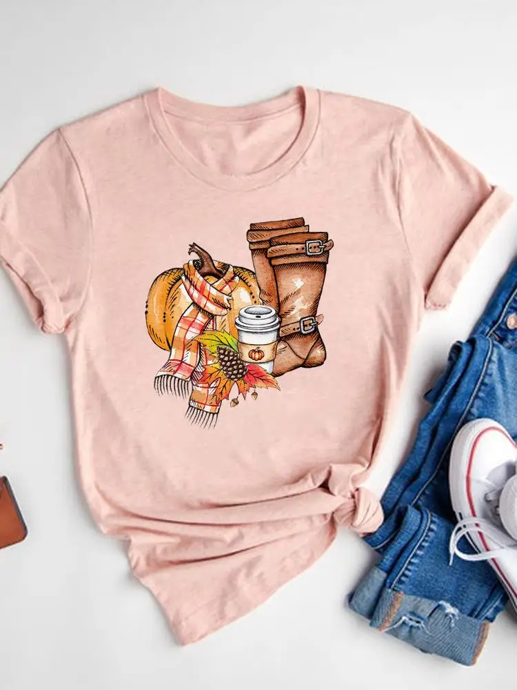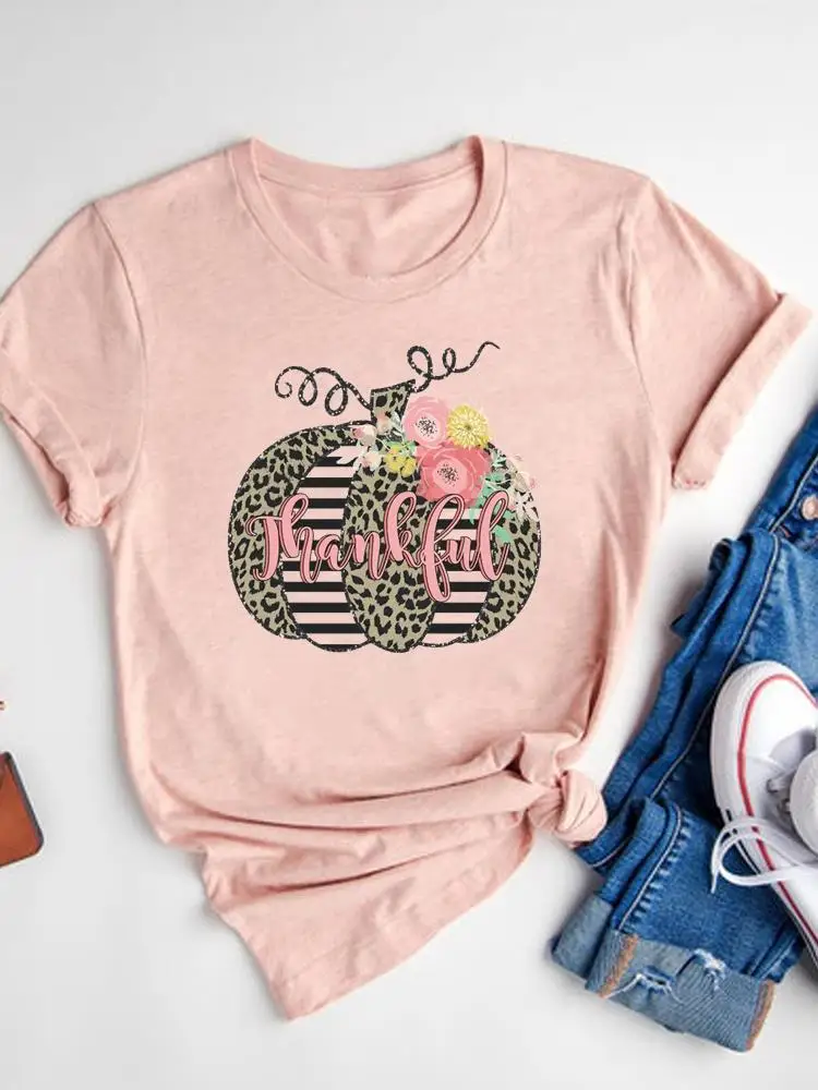 Футболка женская осенняя базовая с графическим принтом на День Благодарения
