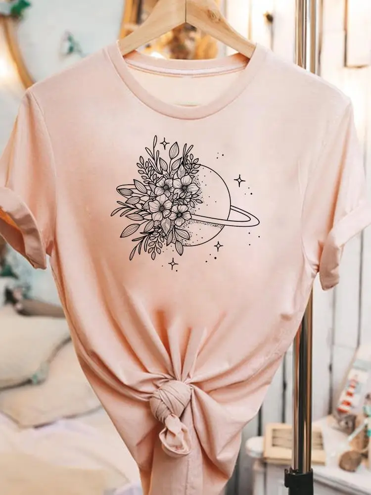 Футболка женская повседневная с коротким рукавом и графическим принтом