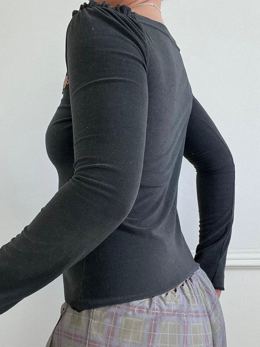 Футболка женская с длинным рукавом, кружевная рубашка с перекрестной шнуровкой, воротник-лодочка, повседневный облегающий топ в стиле ретро, уличная одежда, весна-осень