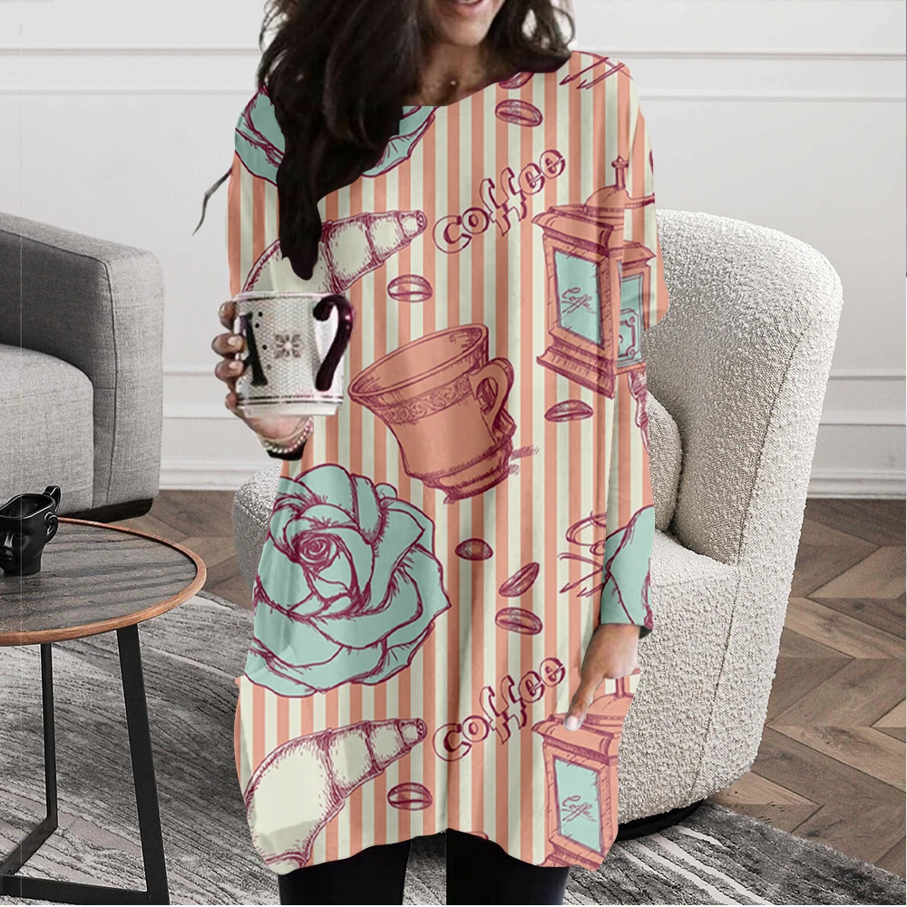 Футболка женская с длинным рукавом, уличная одежда, длинный топ, одежда с принтом послеобеденного чая, большие размеры 6XL, весна-осень