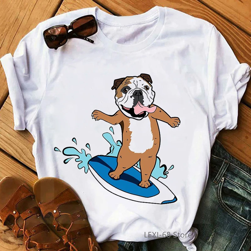 Футболка женская с забавным принтом бульдога, серфинга, акварель, чихуахуа/Тедди/Лабрадор