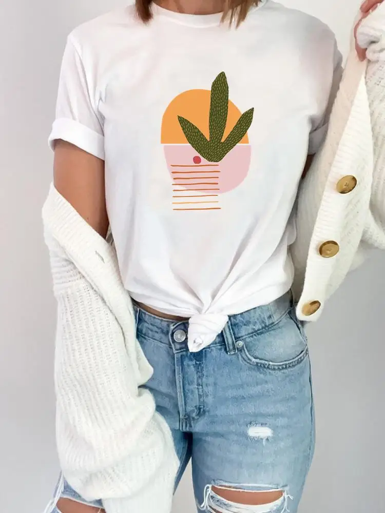 Футболка женская с коротким рукавом, модная летняя одежда, с круглым вырезом, с абстрактным изображением акварели, в стиле 90-х, с графическим...