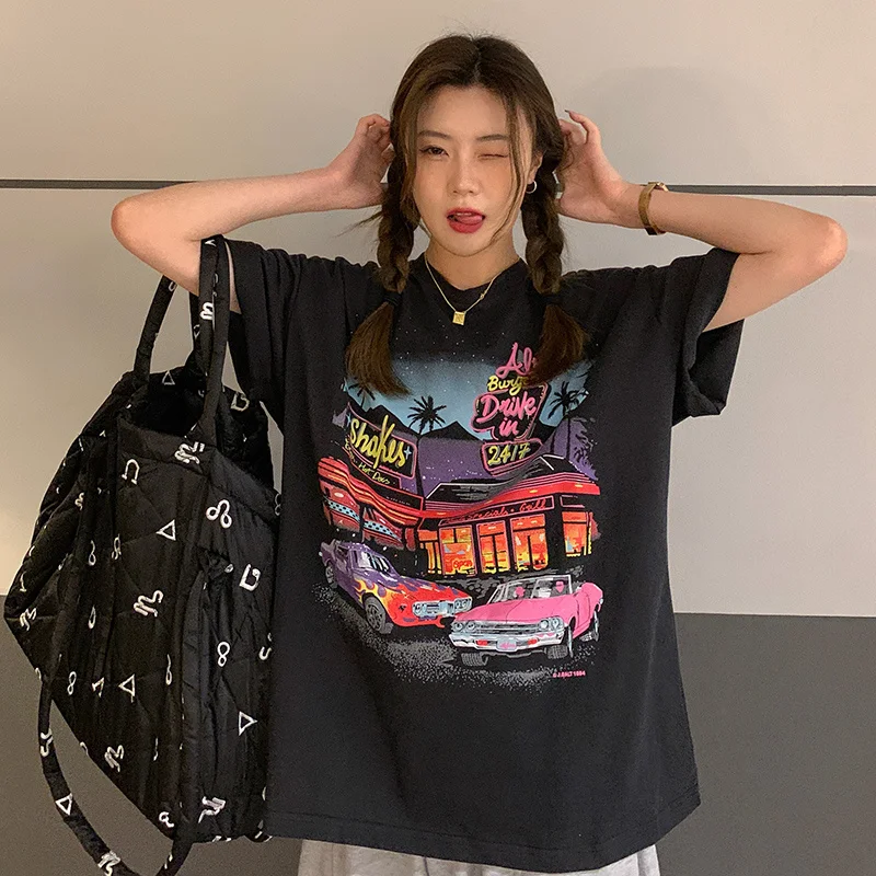 Футболка женская с коротким рукавом и принтом, весна-лето