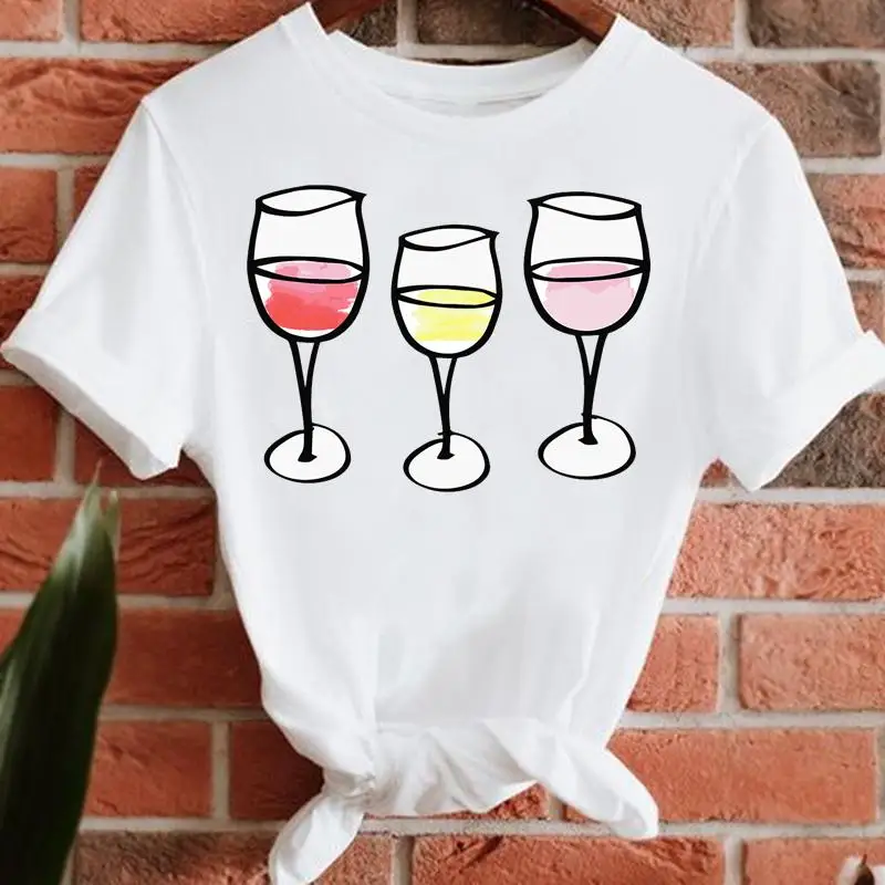 Футболка женская с коротким рукавом и принтом, топ с графическим рисунком в стиле 90-х, акварельная тенниска с винным бокалом, модная летняя о...