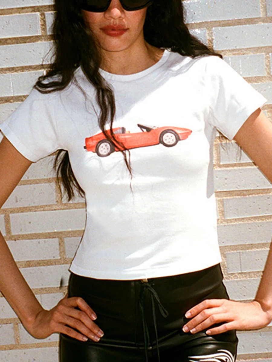 Футболка женская с круглым вырезом, из натурального хлопка, с принтом автомобиля