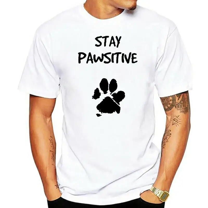 Футболка женская с надписью «Stay Pawsitive», Модный повседневный топ с принтом, хлопковая одежда, на лето