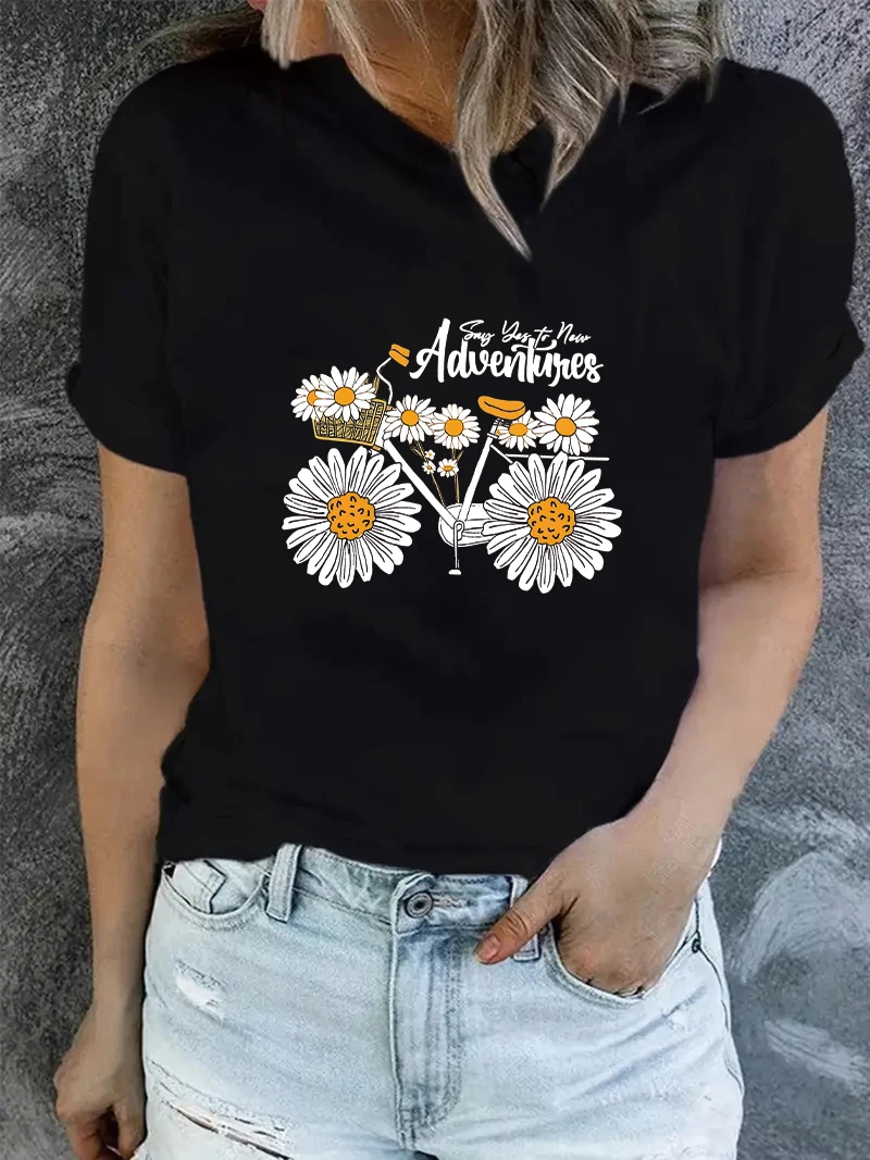 Футболка женская с принтом маргариток, милая Модная Повседневная рубашка с круглым вырезом и короткими рукавами, в минималистическом стиле, креативный дизайн, в стиле Харадзюку, на лето