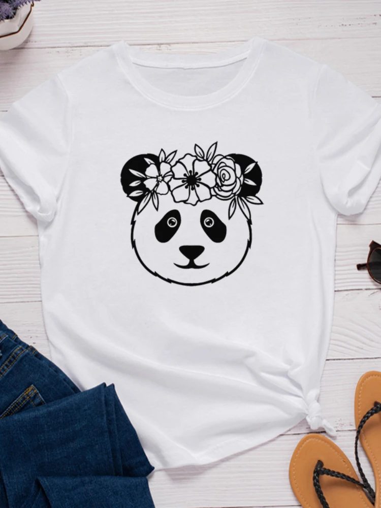 Футболка женская с принтом милой панды, свободная рубашка с коротким рукавом и круглым вырезом, топ, одежда